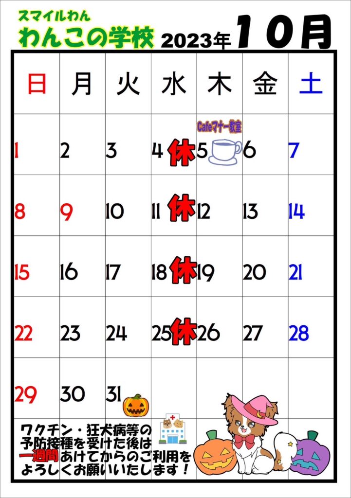 10月は4日・11日・18日・25日がお休みになります。