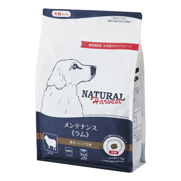 ◇原材料(原材料原産国):ラム(ニュージーランド)、ラムミール(ニュージーランド)、精製白米(米国)、えんどう豆繊維(米国)、米ぬか(米国)、鶏脂肪(ビタミンEで酸化対策済)(米国)、亜麻仁(米国)、えんどう豆たんぱく質(米国)、酵母(米国)、酵素分解チキンエキス(米国)、塩化カリウム(カナダ、米国)、海塩(米国)、塩化コリン(イギリス)、クランベリー(米国)、ブルーベリー(米国)、タウリン(日本)、月見草油(低温圧搾)(米国)、キレート亜鉛(米国)、キレート鉄(米国)、グルコサミン塩酸塩(インド)、コンドロイチン硫酸塩(米国)、ビタミンE(スイス)、キレート銅(メキシコ)、キレートマンガン(メキシコ)、ナイアシン(米国、インド)、セレン酸ナトリウム(米国)、パントテン酸カルシウム(スコットランド)、リボフラビン(ドイツ、韓国)、ビタミンA(スイス)、ビオチン(米国、フランス)、硝酸チアミン(ドイツ)、ビタミンD3(フランス)、塩酸ピリドキシン(ドイツ)、ビタミンB12(フランス)、ヨウ化カルシウム(カナダ、米国)、葉酸(フランス)、アシドフィルス菌(米国)、フェシウム菌(米国)、カゼイ菌(米国)、プランタルム菌(米国)、酸化防止剤(ローズマリー抽出物)(米国)