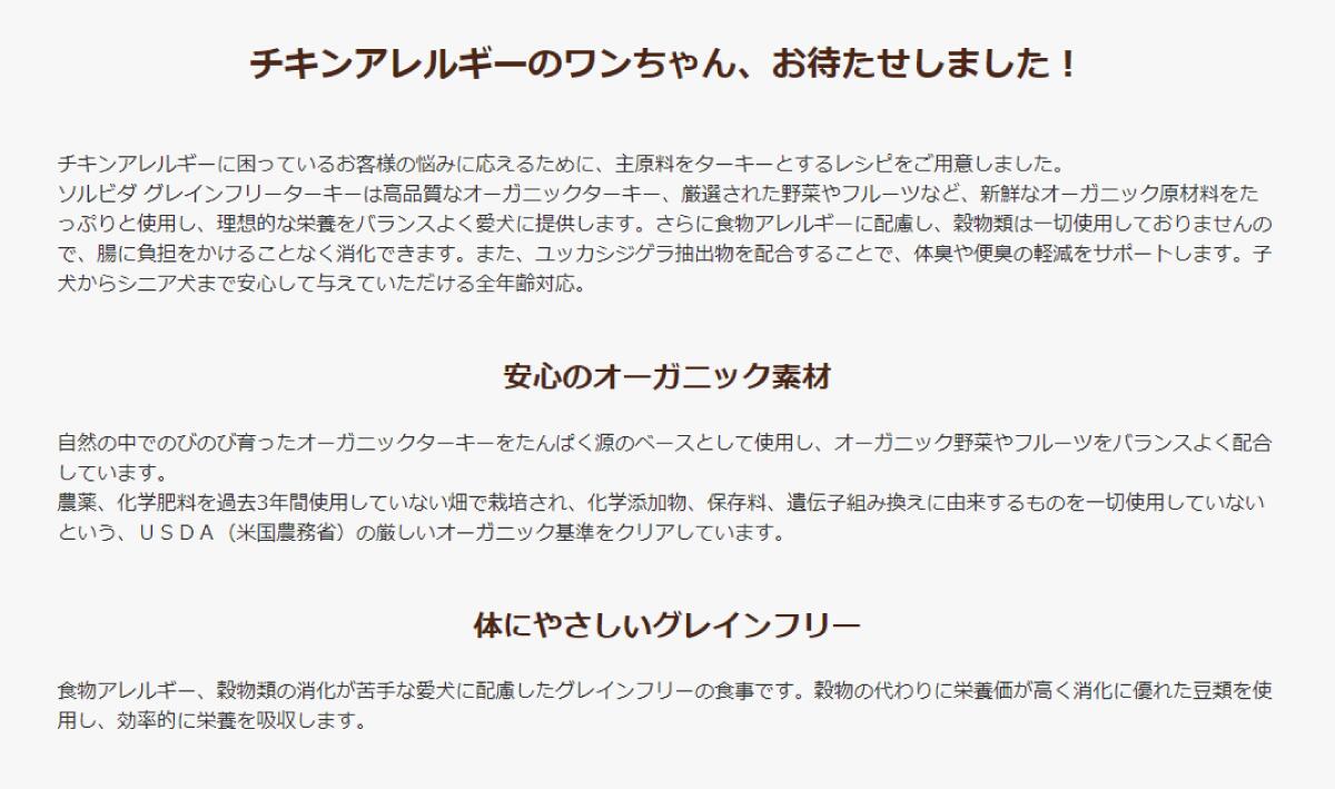 オーガニックターキーを主原料に使用しているのでチキンアレルギーの愛犬にも安心して与えていただけます。